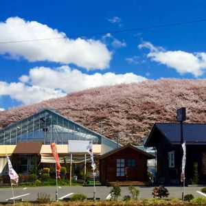 市内の桜の名所🌸弘法山🌸 手前左は、行きつけの観葉植物専門店 車の中からパチリ📷