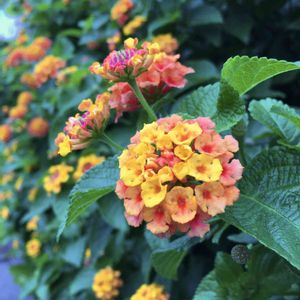 ランタナ いつもありがとうございます! 久しぶりの投稿になってしまいました😅 真夏の猛暑から少しずつ初秋を感じる季節になった様な気がする今日この頃。道端の花壇は鮮やかなランタナが鈴なりに咲いていました。赤、オレンジ、黄色、これから咲こうとする蕾や、既に実になった花達も! 元気のパワーを貰ったよん😊