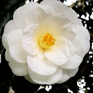 母自慢の白椿。 手のひら位の大輪咲きでかなりの巨木です。 子どもの頃こんな椿見た記憶は無いけど その頃花の事なんて考えて生きてなかったから 気付いて無かっただけかもしれないな。 苗木が大木になるだけの時が経過したのは確かですね。