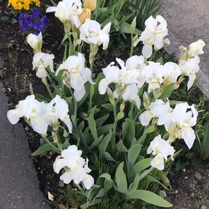 ≪懐かしpicルームⅡ ⑦≫ まだまだ春は遠く遠く、 雪☃️は無くとも花💐も無く。 過去picを代わりに…。。 ・ニオイイリス (別名:ニオイアヤメ German iris) ⇨ 植物🪴検索を再試行 2022.05.11 up (買い出し&散歩の🚶🏻途中にて) ------------ ◉ ジャーマンアイリス の変種で、花が白い。 太い根茎がある。 葉は幅広で、筋はなく、扁平で、 根元から重なり合って生える。 春に花茎を立て、白いアヤメのような花を数個咲かせる。 中央の3枚の花弁は直立し、 外花被片3枚の中央部にブラシ状(ヒゲ状)の突起がある。 (よく似た イチハツ は、トサカ状の突起がある点が異なる。 ジャーマンアイリス は、花が紫色や黄色など、多彩である点が異なる。) 楕円形の蒴果ができる。 根茎を乾燥させたものには強い香りがあり、 スミレの香気に似た香料を作る。 〔◉ネット記載引用〕