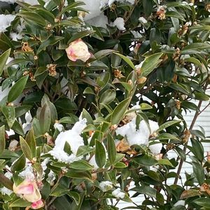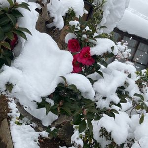 涼を求めて、冬景色を再び ⑨ (冬に咲く花で、涼んで…) ・雪を被って咲く 白いサザンカの花 そのいでたちに 春を待つ力を感じて ≪ 2022/02/18ごろ≫ ----- ⇨ 雪見picたぶん最後かも😀