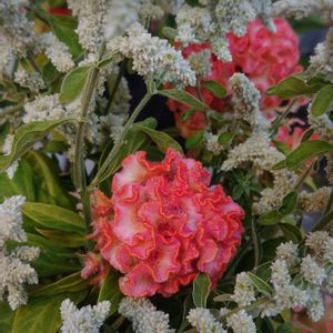 先日お迎えしたサーモンピンクのケイトウとガイラルディアの黄色がよく合う💛🧡