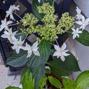 アジサイ八丈千鳥 装飾花が変わっていて素敵✨ 今年はひと房しか咲かなかったけど、来年は多く咲かせたいな。
