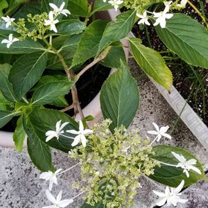 八丈千鳥 面白い紫陽花です😊 苗はかなり大きいのに 花は小さい。 これから大きくなるのかも? 八丈千鳥は、伊豆の八丈島で 発見されたアジサイ✨ 発見されたのが2006年なんだそう。