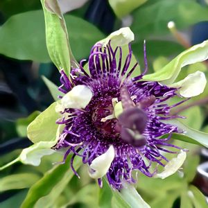 トケイソウ パッシフローラ インディゴドリーム ちび苗が やっと咲いたんだけど うまく咲きませんでした💦 周りの額が伸び切らずに咲きました 次は まだまだ先になりそうです 次に期待して待ちます(^_^;)🩵💙🤍🩷🩷
