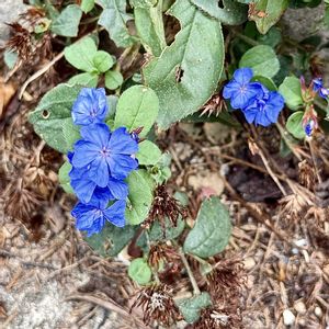 彩月(いろどりづき)の青い花2025~ルリマツリモドキ(セラトスティグマ、ケラトスティグマ)です😊 前に投稿した、ブータンルリマツリも、同じセラトスティグマ属で、園芸的に混同されていることもありますが、ブータンルリマツリは低木で、こちらのルリマツリモドキは宿根草ですので、お花はそっくりですが、形態が異なりますね。 ルリマツリモドキは背丈の低い宿根草で横に広がるので花壇の前方に植えるのがいいそうです。 今はどちらも鉢植えですが、耐寒性もあるようなので、冬が来る前に地植えにしようかなと思っています🤗 小さいですが澄んだブルーがとても美しいお花ですね💙😍💜😍