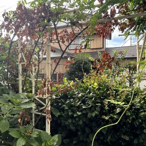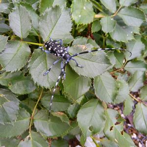 夏につるバラ、ローゼンドルフシュパリースホップの葉がだんだん茶色くなり、遂には枯れてしまいました。夏が暑すぎて水やりが足りなかったのかと思っていましたが、昨日枝を切ったらカミキリムシの幼虫が、根本の茎の中に潜んでいました。根本が見にくい場所にあるため、カミキリムシに気づきませんでした。一昨年は葡萄がカミキリムシにやられてしまい全体が枯れてしまいました。日頃から注意してみていないと駄目という事を痛感しました。2枚目は枝に潜む幼虫、3枚目は取り出した幼虫です。