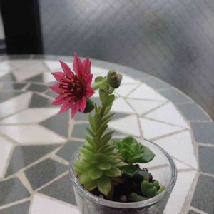 徒長しちゃった子達のてっぺんを集めて寄せ植えに挑戦中なんだけど、ひょろひょろと伸びて来ちゃって蕾がついたセンペルビウム。 今朝、見事にパカッと開花してました(笑) 意外とキレイなお花なのね〜🌺 さてあと2つも蕾がついているんだけど、どうしたもんでしょうかねぇ🤔 高さが3センチもないくらい小さな株なんだけどね〜💦