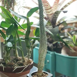 おはようございます⛅ 徒長した茜の搭 先端には小さな花芽 が出てきました