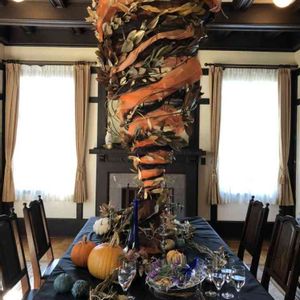 こんばんは😊 今日は朝から大雨‼️ どうか、皆さまご無事でありますように💕 水曜日、青空に誘われて山手西洋館を散策しました🎵 こちらはベーリックホールのハロウィン🎃のテーブルコーデネートです~⤴️ あまりにダイナミックなデスブレイは圧巻でした‼️ 対照的に銀のプレートに並べられた小さな木の実は本当に可愛らしくて見いってしまいました😊 数人の方がお庭の手入れをしていました❗️ 憧れのシダーローズを手にとって説明をしてくれて、しかもひとつ頂きました‼️ずっと思い続けていると叶うものなんですね~⤴️🎶💕 今日もお疲れさまでした💕