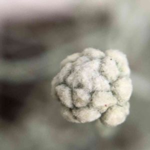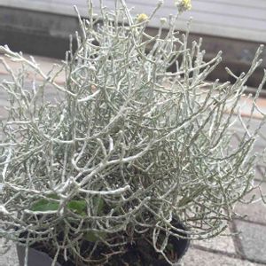 名前のわからない子 花屋さんの隅から連れてきた子 銀白色の枝の先に 蕾のようなまん丸が出来たと思ったら、その先っちょに 黄色い小さなつぶつぶが… これは お花なの? ※Je suisさん、chippiさんから 名前を教えていただき、カロケファロスプラチーナとわかりました(^^)