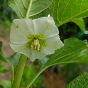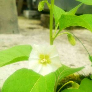 実家の畑のあちこちに うつむき加減で 白い花が咲いています🌼 なんだろう?🤔 ナス科っぽい? 両親が不在の時に 勝手に写真を撮るから 名前がわかりません😅