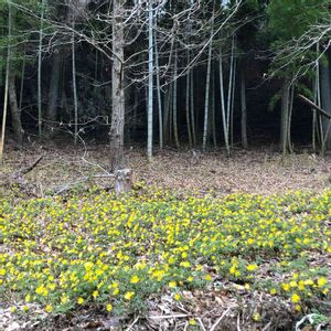 檜原街道沿いの民家のお庭で咲いていた 福寿草 山奥の集落はまだ春が始まったばかり