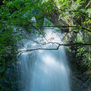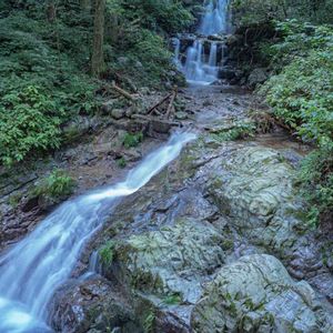 ②2020年9月9日の東京都檜原村 払沢の滝シャツタースピードをわざと遅くして、水の流れを白い帯のように見えるようにしました。