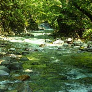④2020年9月9日の東京都檜原村 払沢の滝に向う手前の秋川の流れ