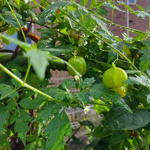 3週間前思い掛けなく苗頂きフェンスに絡ませたら白い小花が咲き今朝可愛らしい風船が出現