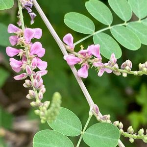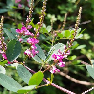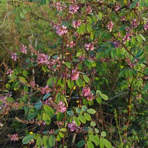 センニンソウに気を取られ忘れていたけど 今年もタイワンコマツナギが道の法面を覆い始めました😅昨年さんざん調べてタイワンコマツナギではないかと。 ハギのようだけど そんなに繊細ではない😅 トウコマツナギかもですが。