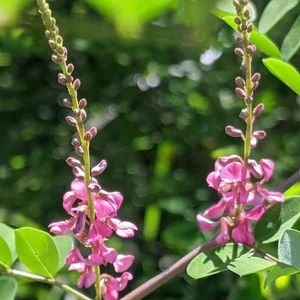 ハギ?ヤマハギ? タイワンコマツナギと出ましたが AI 近所の低い山の畑の近くやや林みたいなところに たくさん咲いていました。 ただの萩なのかなor 神奈川なので ただのコマツナギかな。 まさか まだ萩は早いだろうと思ったら、結構咲いてるんですね。