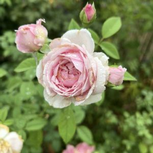 1枚目 ニューイマジン 先月末お迎えした開花苗 奥にいるのは一緒に迎えたパニエ どちらも合わせるの難しそう〜と思ってましたが この二人の組み合わせが意外に合う どちらも和の雰囲気だからかな 2枚目 スピリット オブ フリーダム こちらも昨冬迎えたばかり 何枚花びらがあるんだろう…まだまだ出てきそう 3枚目 群舞 こちらも同じく昨冬迎えたばかり 花がちっちゃい… 小輪ではなく極小輪 植え場所間違えたかな 4枚目 バイカウツギ ベルエトワール 甘くて爽やかな良い香りです 控えめな紅色のブロッチが可愛い 今日は初めましてのお花がが色々咲いていて 仕事の疲れも吹き飛びました✨