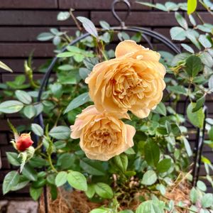 スピリット オブ フリーダム 廃盤品種のイングリッシュローズ 昨日〜今日の花 だんだん豪華になってきました よく咲くし、枝がお行儀よく伸びて広がらない 現在160cmくらい、細枝だけど支柱無しで自立し ちょうど目線の高さあたりで俯き気味に咲きます こんなに良いバラなのに廃盤になっちゃうんだなぁ… コンパクトなバラにシフトしてるんですね 私的には狭庭だからこそ上に伸びるバラってとっても重要🙌