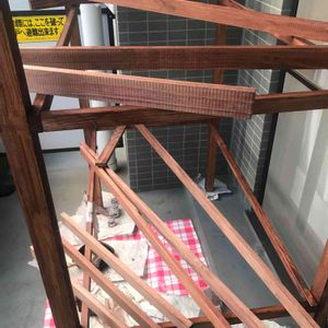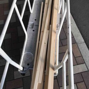 多肉棚への道! その3 大枠を作ったら必要なものが見えてきました。 1 落下防止の板 2 スジカイ 3 DAISOのネットを使う予定だったが、強度が弱いので、補強の板を三箇所✖️2いれる 4 水を右から左に受け流す為の板とプラダン それらをまたホームセンターに買いに行き、お安い杉板を見つけたのでカットしてもらいました。 ちなみにプラダンも切ってもらえて助かりました! 私の車は大きめですが、さすがに1800✖️920とか、むり。 ニスを塗り塗りして、板によってこんなに色違うんかいと思った写真。 オイルステインにしようか迷ったんですけどー、水性ニスにしました。 続く