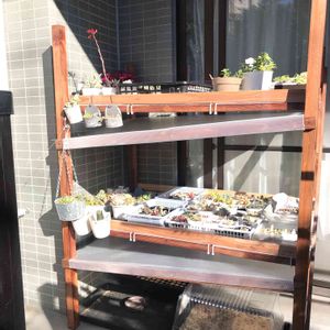 多肉棚への道! 完結編その2 多肉棚を作ってみて グリーンネックレスを吊るす事ができるのが良いなーと思いました。 さらに多肉棚は今後も ブラッシュアップしていきます! さて、気になる経費は.... 赤松角材 2本 980円 ホワイトウッド 4本 300円 杉板 5本 250円 プラダン 2枚 186円 DAISO ネット 6枚 220円 水性ニス 3本 110円 結束バンド 110円 皿木ねじブロンズ50本(意外とネジが高い)483円(50本で) カット代無料(神!) 以上で、だいたい6000円くらいでした。 最初、ビニールカバーのついた5000円くらいの棚を買おうと思っていたのですが ビニールは蒸れちゃうのに、保温効果はないからよくないとYouTubeでみて (多肉初心者はYouTubeがバイブル) あと、棚の容量不足と、高さが低いので 日当たり問題が解決できないと思い 思い切って作ってみたわけです。 DIY女子....女子.... ....女子なのでw 永遠の乙女なので! (キッパリ!) また何か作ります!✨ 多肉棚への道 ご覧いただきありがとうございました!! コメントもいただいて嬉しく楽しかったです。 thank you ☆