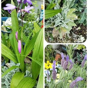 叔母にもらいました。年期が入ってる鉢に 植えてあり🍀 向かって左のはGSで だじゃれを言った 【シラン】かなぁ⁉️ 狭いところが賑やかになりました🤗