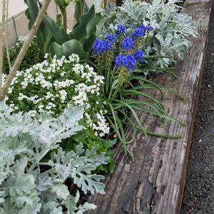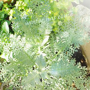 優しいグリーンをいくつか鉢に寄せてます。うさ耳のビオラも仕込んだのですが、まだ咲いてくれません🐰 シルバーレースに朝日が射してキラキラ〜🌟 いよいよ冬到来ですね!