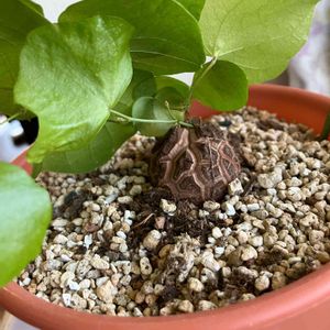 ウチの🐢も だゃぁーぶ伸びたでよ♪ 🌿🌿🌿🌿🌿🌿🌿 でもそろそろ伸びる方は緩やかに😳 そのくらいのタイミングで 1枚ずつ付いてた葉っぱのとこから2枚3枚と増えてくるんだね〜(ง ˙ω˙)ว(ง ˙ω˙)ว(ง ˙ω˙)วオモロ♪ 🌿ヤマノイモ科ディオスコレア属 エレファンティプス 和名 アフリカ亀甲竜