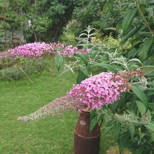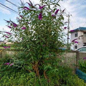 ブッドレア 自宅から少し離れた駐車場の敷地内に、なんと巨木ブッドレア様が。3mはある。 数日前に気付いて、今朝ようやくオーナーさんに会えて、お話を聞けた!初めはやっぱりうちの子達と同じくらい、小さかったって。 「一房あげましょうか?」と仰るのを勿体ないからお断りして、代わりに写真を撮ってもいいですか、と聞いたら、ご了承下さった。 なんか、植物ってすごいなぁ....このオーナーさんが大事にしてるんだ。ここの敷地には、他にもたくさんの植物を育てておいでです。
