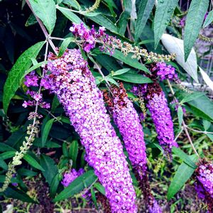 ブッドレア 最初に見たのはディズニーシーでした。 大きくなると知り諦めてましたが ここのお宅は 二階の屋根まで伸びてました。 見事でした。 💜ブッドレア💜 軽井沢にて