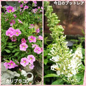 おはようございます(´∀`*) 昨年小さなポットでお迎えしたブッドレア🌺 あっという間に大きくなり(^-^; コンテナーの中でクネクネと伸びピンクの房から香りで🦋を呼んでます。 雨にあたっても元気なオキシペタラムブルースターとニチニチソウ ミニナツ ピーチも 暑い空気を和らげてくれてます(✿´꒳`)ノ°+.*