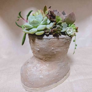 誰のシューズかな🤔 可愛い多肉がベビーシューズに 寄せ植えも楽しい(*˘︶˘*).。.:*♡