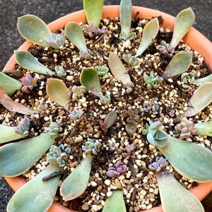 葉挿しさんの少し大きくなってきた子達を大きめの鉢に寄せてみました😊 大きくなって、ギュウギュウ、モリモリになってくれるといいなぁ💕