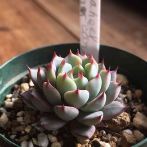 おはようございます( ^ω^ )☀️ 粉が綺麗な青白ピンク色の謎多肉🎵 たぶんエケベリアの何か? 可愛いから名前分かんなくてもいいわー😆 うちの多肉そんなん多い気がする💧Σ(×_×;) この子は『蒼星』と判明しました✨ まめきちさんありがとうございました(*´ω`)💓 さっ名札書かねば‼️🏃💨💨💨