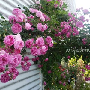 ポリアンサの挿し木のつもりで植えたら、ランブラーだったっぽい💦💦💦まさかのマニントン?? おかけで玄関モリッモリ🌹🌹 この先どーすんの??(ノ∀`)アチャー