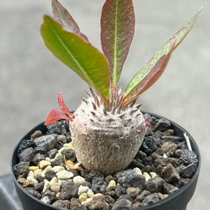 またまたパキポディウムエニグマチカムです。 この子はまだブースト中なのか、葉が落ちきらず膨らみ継続してました。 先月写真との比較でもわかりやすい程です。 調べても新種のためか情報が凄い少ないですが、パキポの中でも強いほうなのでしょうか??? 花が咲くまで5年かかるというデータもありますが、そういう種類ってパキポの中でも強い種類が多いような気がしますし…… デンシフローラム系という事なので強いのか…… まだまだ名前通り「謎」が多いですね