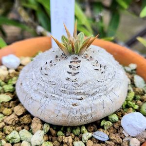 パキポディウム・エニグマチカム 小さくてポッテリ丸いボディが可愛くて、つい魔が差して買ってしまった。🐧💦 …もちろんナイショです。🕶️👍