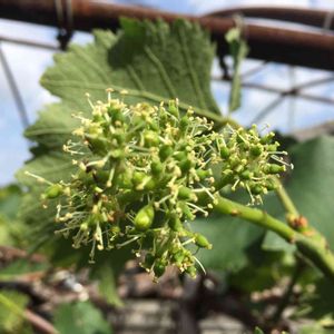 花が咲き始めてるようです。でもこの姿…。私に適当に扱われへんな形になっています。葡萄になれるのでしょうか?