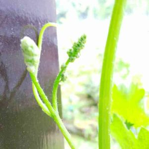 今年もまたゴーヤが、ここじゃ困る鉢から伸びて来た。😬 この鉢も、ゴーヤが出てきたもうひと鉢も、他の住人で混み合っている。希望は、大きいのにアイビーとドクダミしかいない深い鉢なんだがな。 なぜ、よりによってこの鉢なのだ。 と、文句たらたら。 ろくに世話もしないのに、もう8年もわがベランダで生き抜いているゴーヤなのに、敬意が足りないね。😁