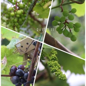 去年も 一昨年も 結局一房🍇しか収穫出来ず😂 しかも食べ頃にはなっていなくて🦅🐦w 右下が今年🍇昨日の状態です😄 どうなるかなぁ