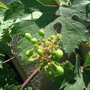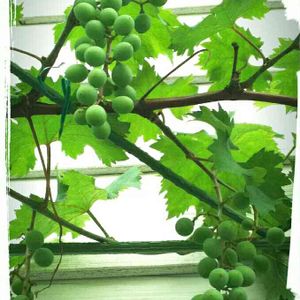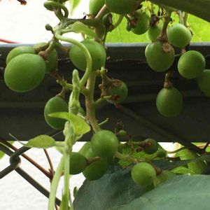 今年は巨峰が42個出来ましたが間引いて14個になりました。 受粉が虫任せなのでいびつな形ですが実が膨らんでくると嬉しいです🎶 収穫は2ヵ月先です😃 それまで観賞できるので道行く人も ちらほら見ている様子。 実のなる植物って本能的に見ちゃうんだね😊私だって見るもんね