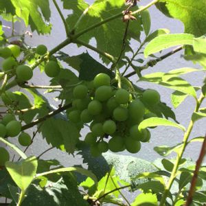 亡くなった義父が植えた🍇巨峰です。 何年目になるかなー? お隣さんが🏠建て直ししてから日当たりがイマイチですが、今年はいつもより実がついたような... 手入れもせず、実がついても鳥に食べられたり、今年は袋がけしてみようかな。 一房綺麗に熟すのを待つのはなかなか難しいです😔