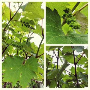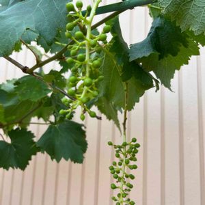 去年植えて2シーズン目のブドウ(巨峰)、実が大きくなってきました😀 2シーズン目は摘果して株を育てようとか書いてあったりもするけど、なんかここまで来ちゃいました😂 カラス避けの袋とかしたほうがいいのかなー🐥