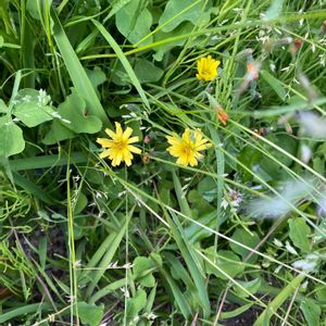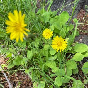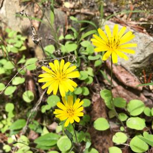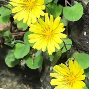 ジシバリ(イワニガナ)少し上地域への山道脇に咲いてました。 🌱キク科ニガナ属。多年草。花期4〜6月 🌱名の由来は、細長い茎が地面を這いながらところどころに根を下ろす様子が地面を縛るように見えるからとの事^ ^