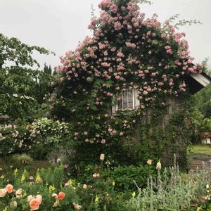 こんばんは*॰¨̮ ♡ きようもお疲れ様です゚*.。.*゚*.。.*゚*.。.*゚*.。.*゚もう一枚ノーゼンカズラです。お花の後ろの建物お手洗いなのですが屋根に小さなお花がぎっしりと咲いています*॰¨̮ ♡ローザンベリーにて