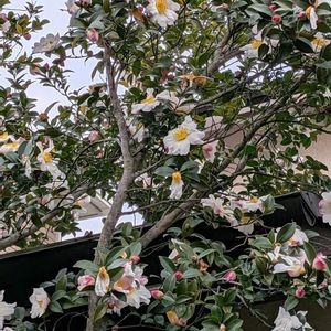 今年も、山茶花の季節になりました。 紅、白の山茶花が寄り添う様に並んで咲いています🌺