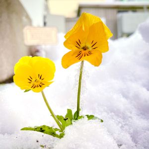 我が家のど根性パンジー🏵何度、雪の下に埋もれても…雪が溶ければまた顔を出す…どうして枯れないんだろ…北国の寒さを物ともしない生命力✨パワーをもらった😆♪