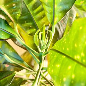 以前、投稿したクロトン🤗🎶真ん中に葉っぱ🌿の赤ちゃんが…😆✨今、一番大きな葉は長さ20cm以上あるんですが、この赤ちゃんは2cm位👶なでなでしたい💗🎶
