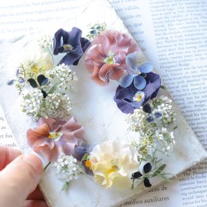 制作途中の画像ですが、ビオラのドライフラワーリース。 完成まであと少し…!